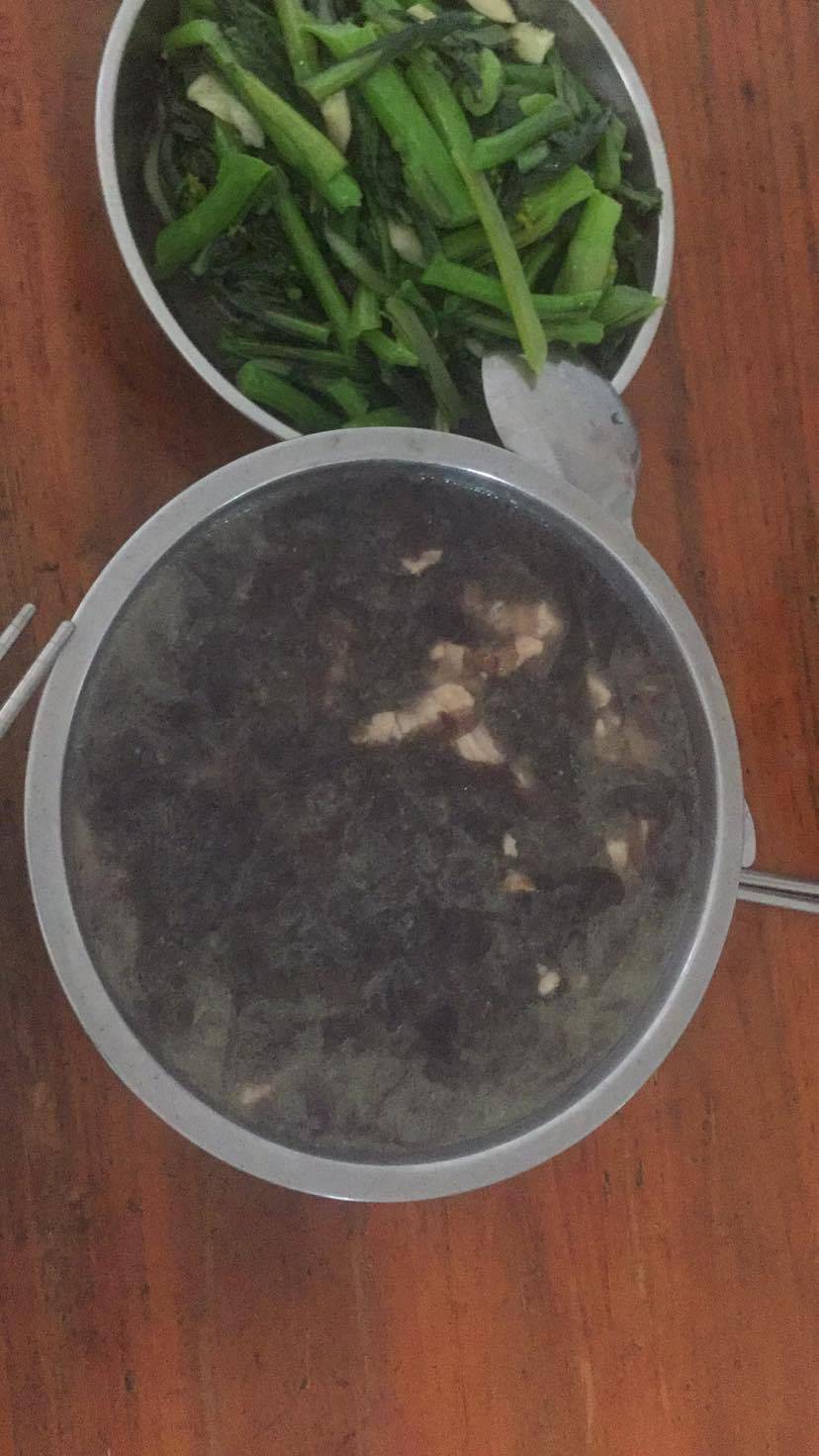 中午吃的青菜,紫菜瘦肉汤。
