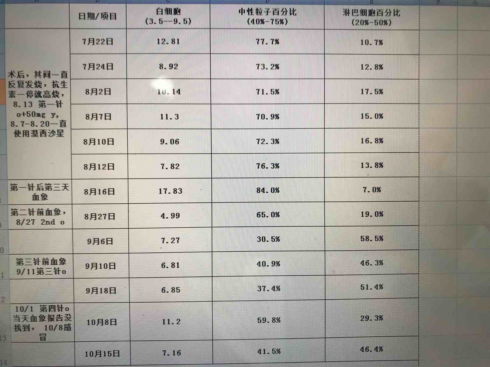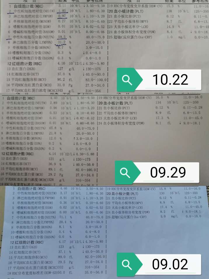 我也很关注Nlr 还有淋巴/中粒数,这个数值似乎可以反应效果