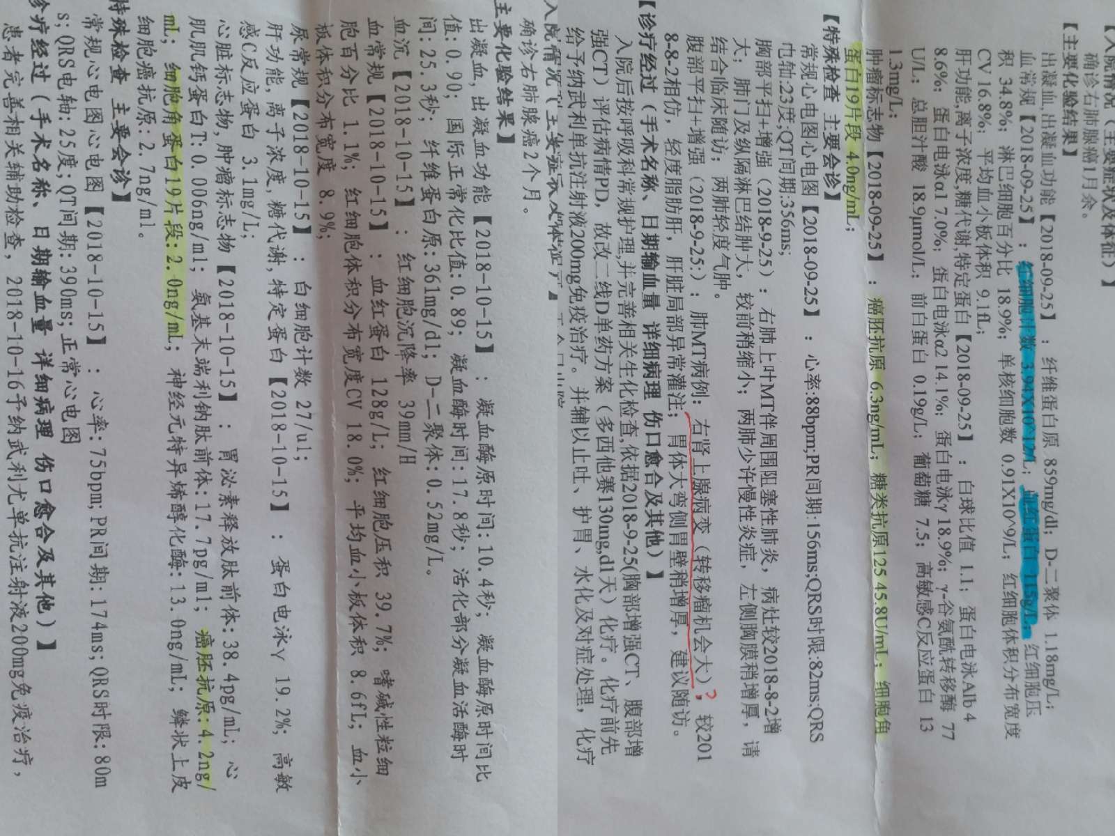 陈医生,这是我爸两次O药前的入院检查,第二次直接O药单抗,我爸没打之前,两次化疗(培美 顺铂)后,咳嗽还是痰中带血,打完第一针O药 多西,咳血没了,咳嗽也少了,人也胖了挺多的,这次第二针直接O药后,本来化疗会有反应,现在也没有了,和平常人一样,我们的主治医生说,第一针是联合第二线化疗的,不知道哪个起作用,再说O药联合一线化疗的多,这次单药看看