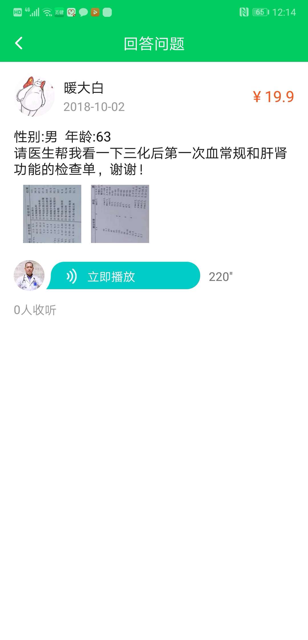 陈波医生欢迎用Pd1的觅友们来这里晒用药前后的血常规变化,一定要有报告的图片哦,大家一起摸索一些规律