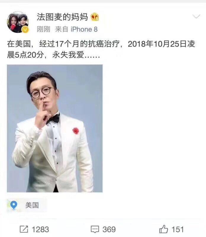 早上又听到一个因癌去世的消息。唉,一时间喉咙哽咽,心里发堵。名人们有钱有资源,可以去最好的医院、可以出国治疗,但一样生死有命!