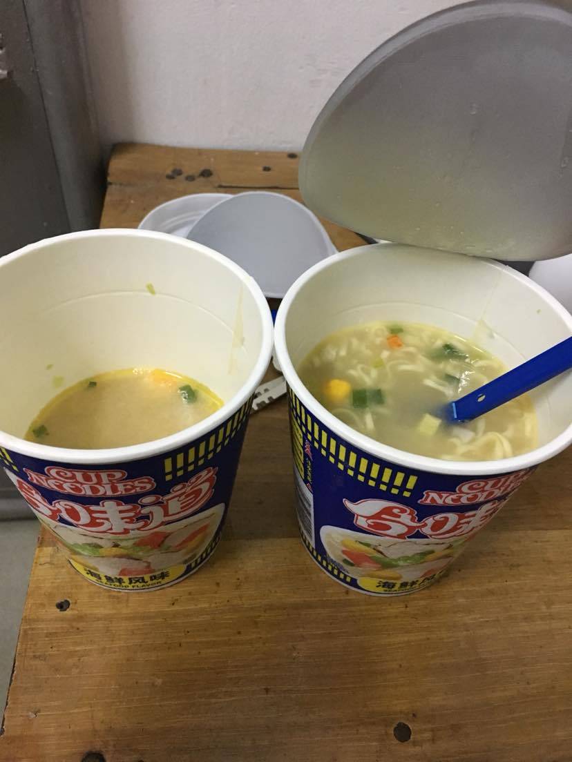 我独自一人 ,走在空荡荡的公路上 ,走了大约30分钟 终于走到一家24小时的便利店 买了两桶泡面