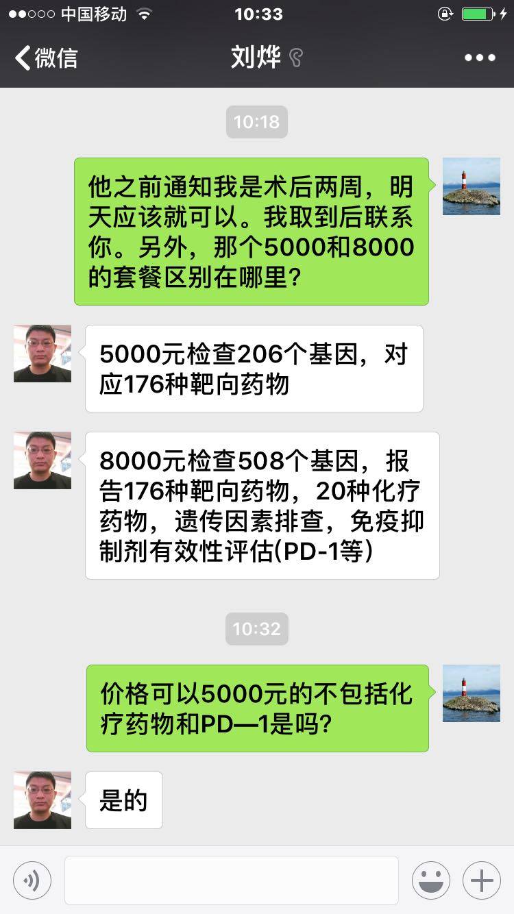 5000元206个基因跟华大基因的价格一样,我去年5月前后在华大查了11个有靶向药可用的基因,价格3500元。
