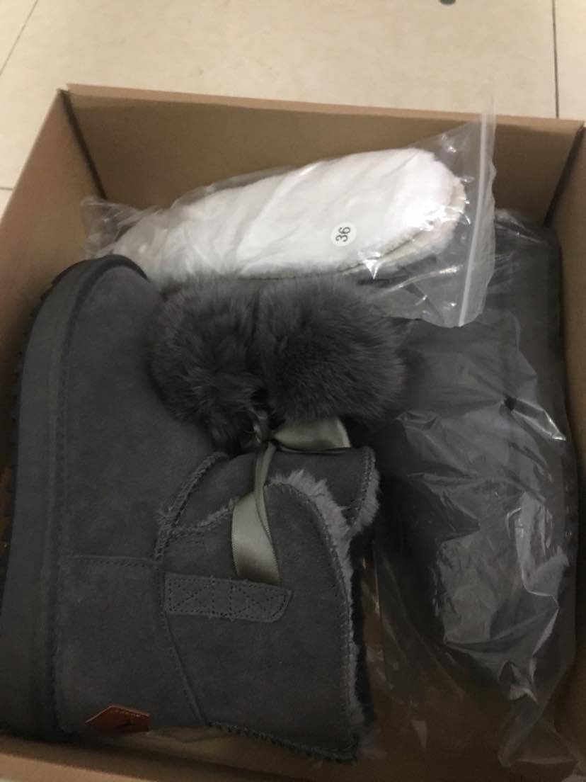 我和二姐的雪地靴到了。灰色36➕2 啦啦啦。质量挺好的。舒服。冬天肯定不冷了 啦啦啦 等我把我三哥儿的鞋垫绣好就一起发回去(啦啦啦 姐姐们穿新鞋子 弟弟有新鞋垫阔以了 男孩子 穿什么新鞋子 不用不用😄)