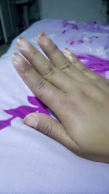 好像好肿呀!你指甲里面怎么啦?