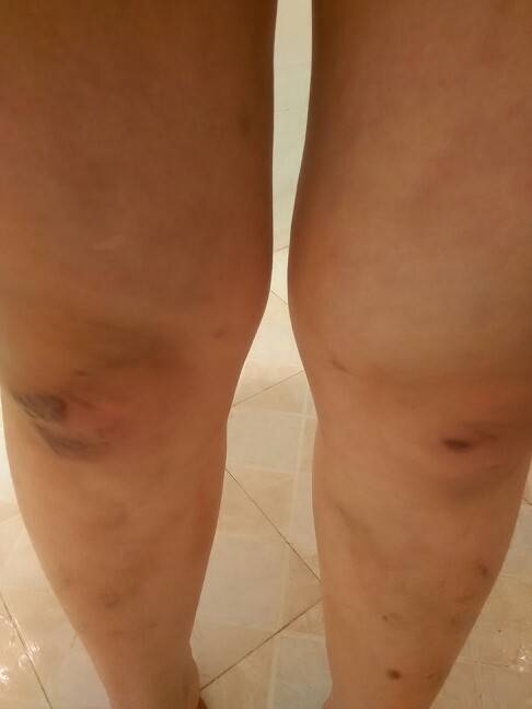 我也会,想不起来什么时候走撞到,膝盖会淤青两三个地方,过几天会好,但是没有你这么严重就是了