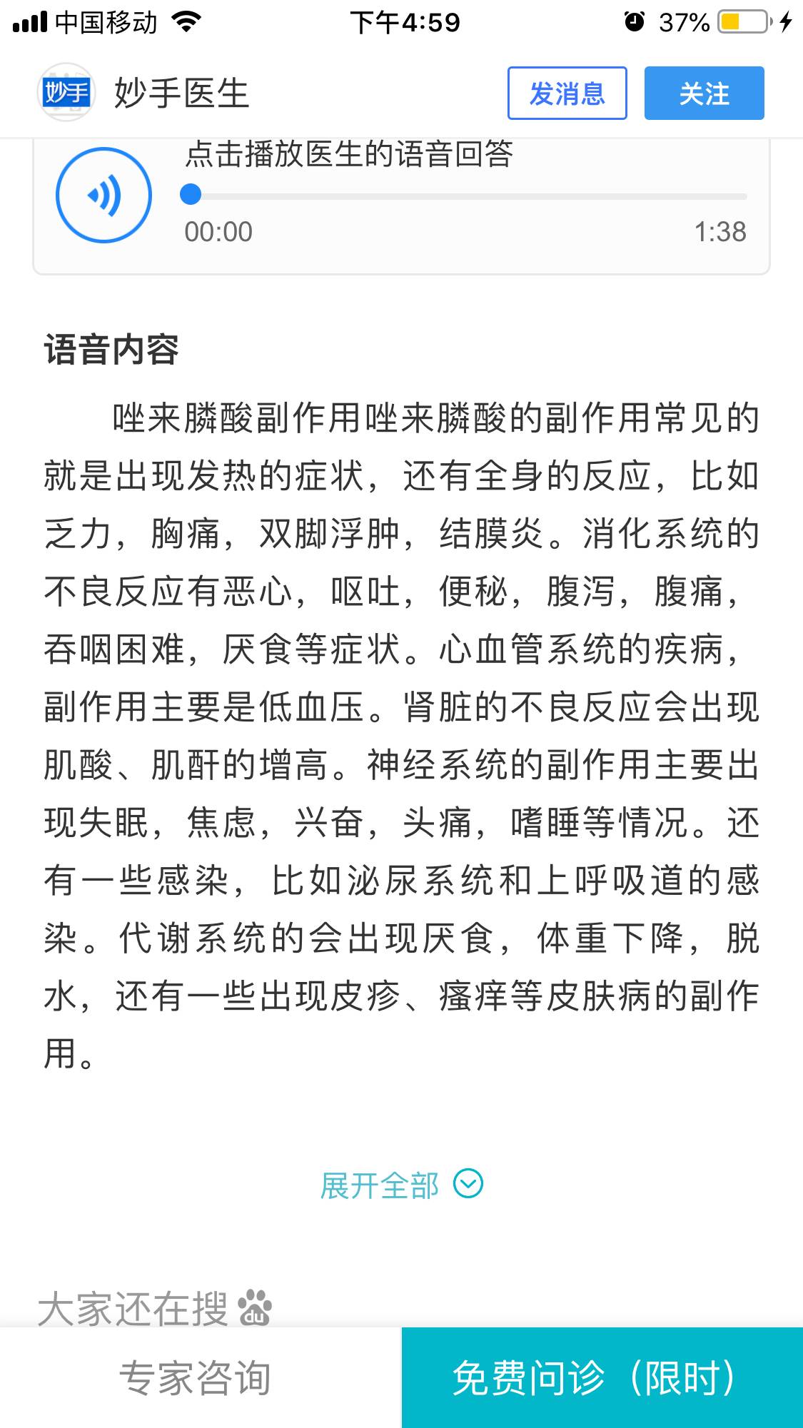 也许是唑来膦酸的副作用,再观察一下。