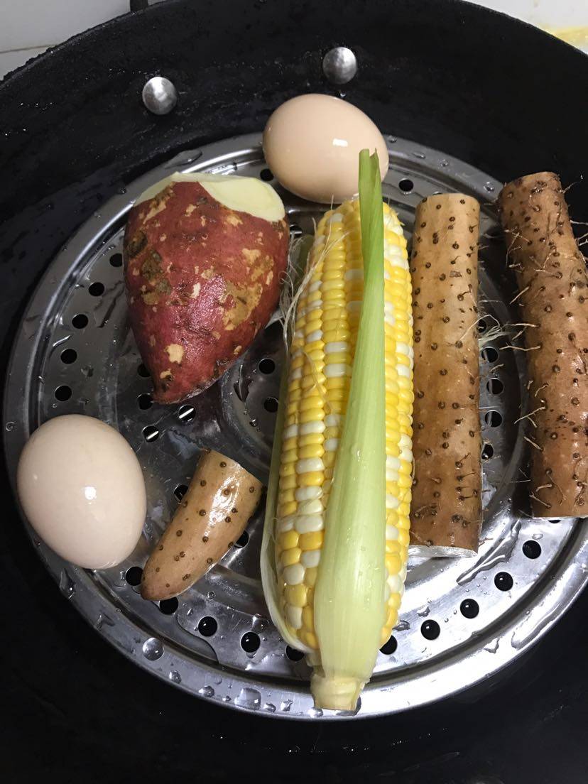 早餐:玉米红薯山药若干,黄豆莲藕豆浆600毫升。