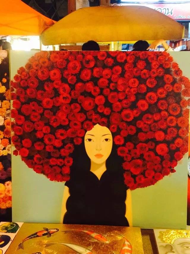 收拾完毕,跟我的小伙伴一块出去寻找吃的去啦!碰巧周末,去清迈的周末市场转转,结果因为不认识路,走了好远,最后遇到一个良心的士司机,50泰铢把我们送到周末市场,清迈的周末市场跟曼谷比,东西要精致很多,而且很有特色哦,首先是手绘的油画,价格真的很公道。