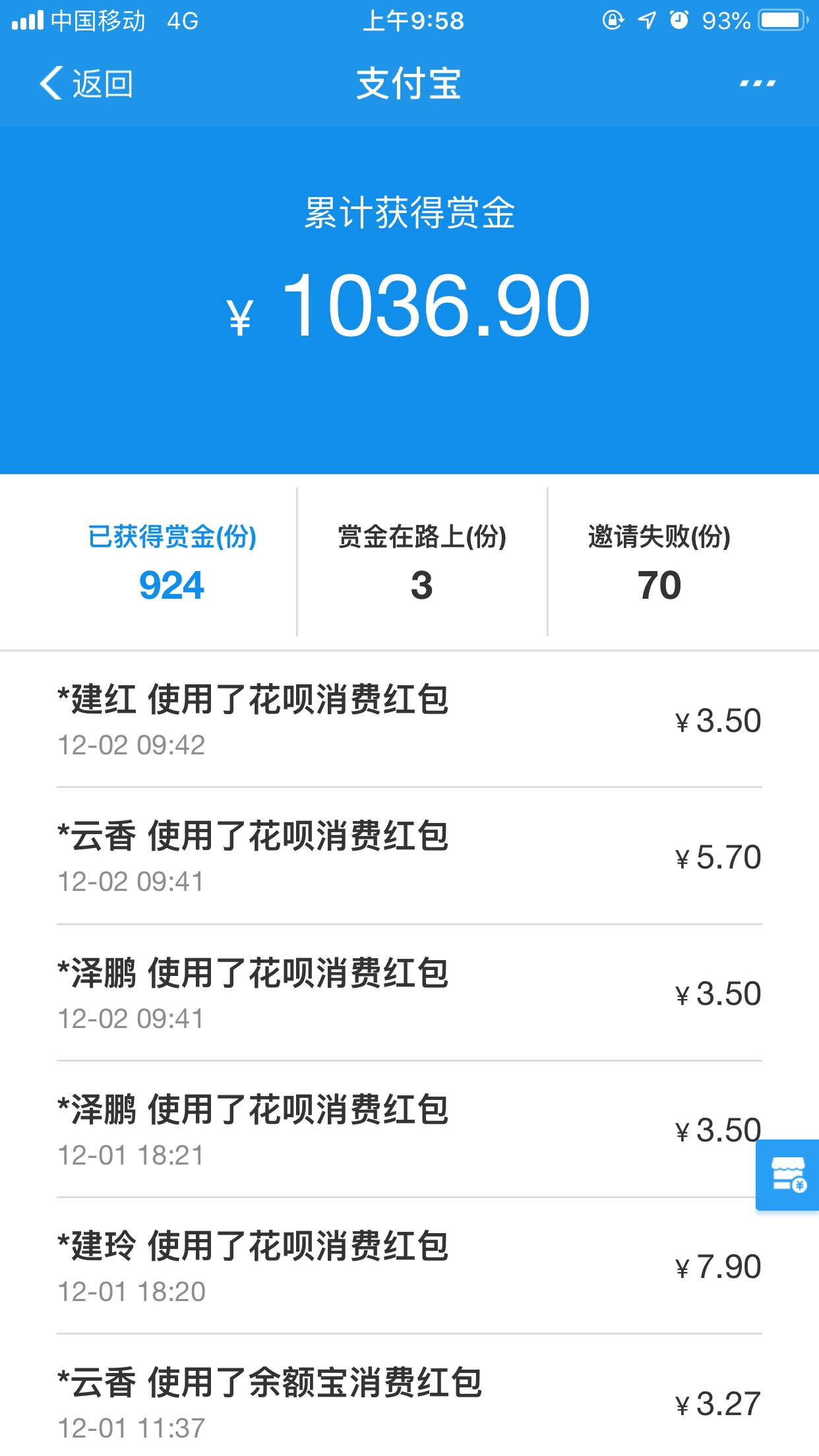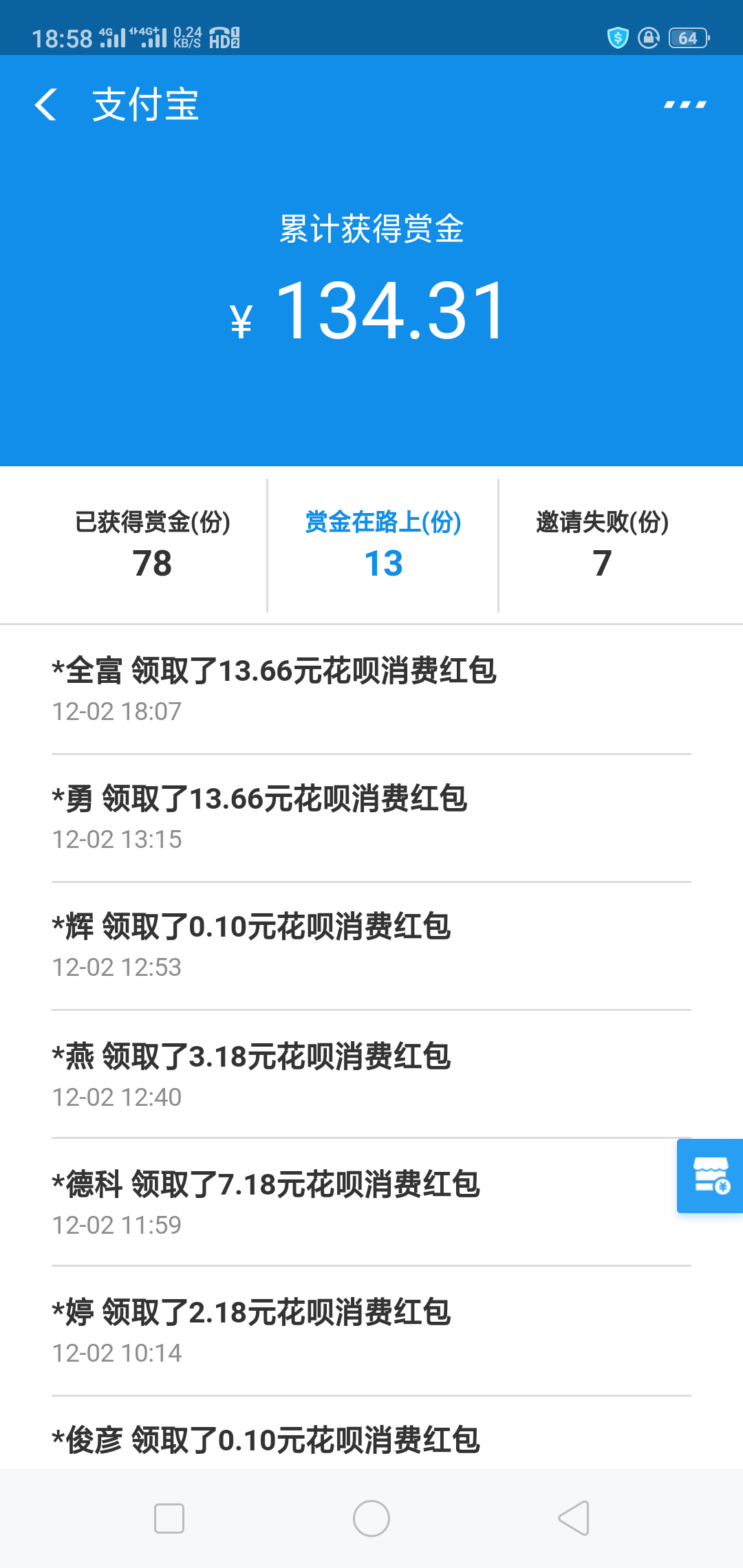 我这两天领了二十几块