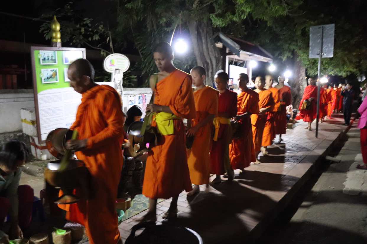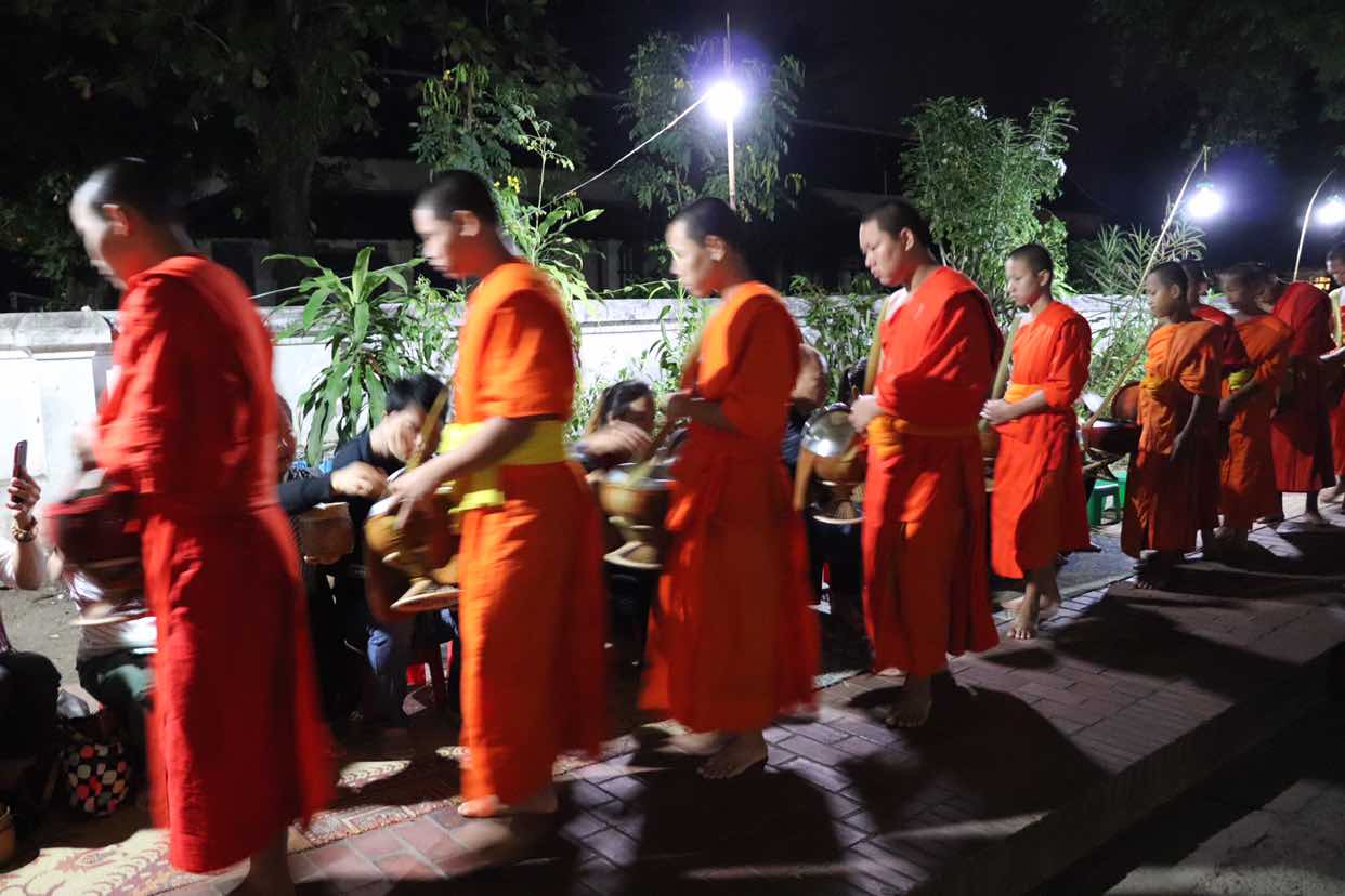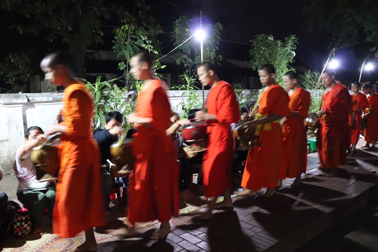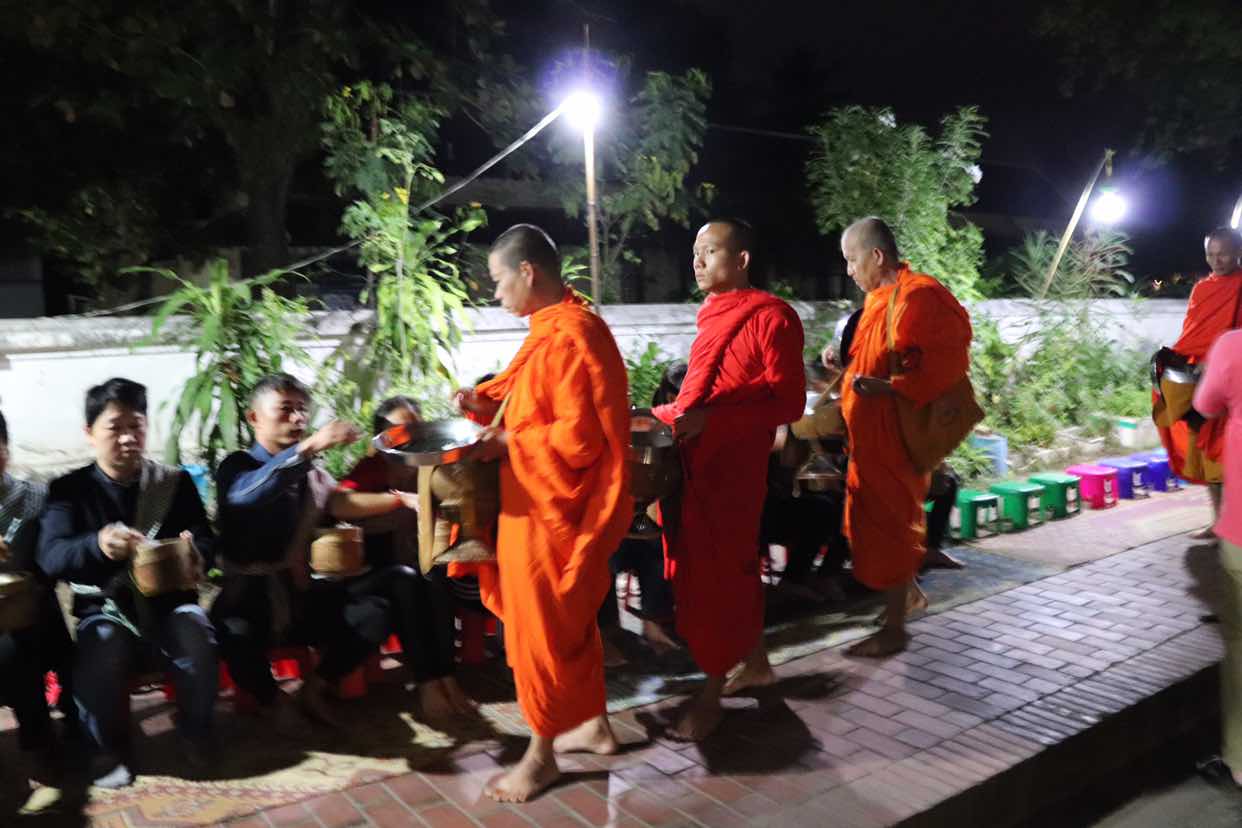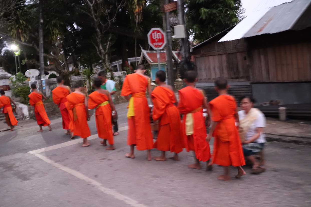 来琅勃拉邦,不能不看的是清晨布施。 这是一个古老的习俗,清晨出家人走出庙门,接受善男信女们的食物,同时也给他们送去祝福。