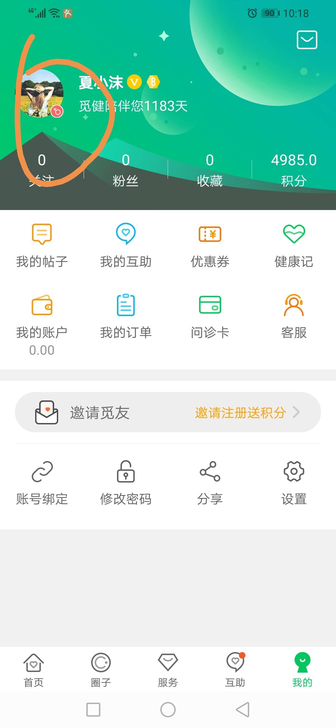 点击自己头像进入