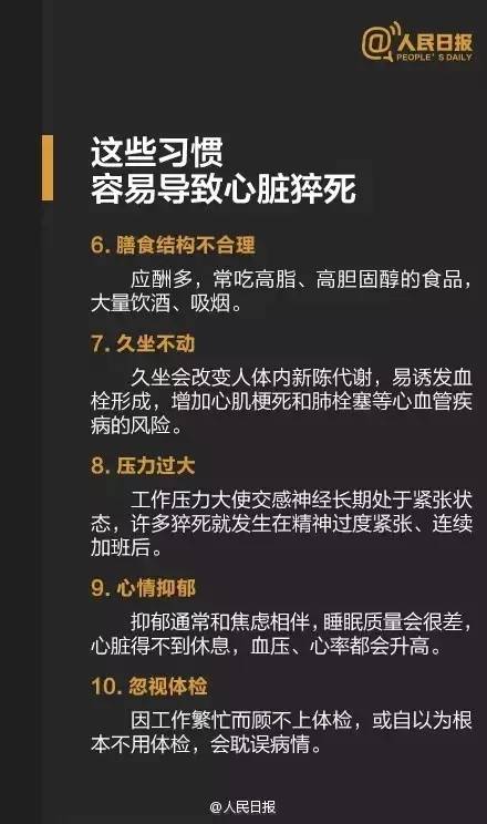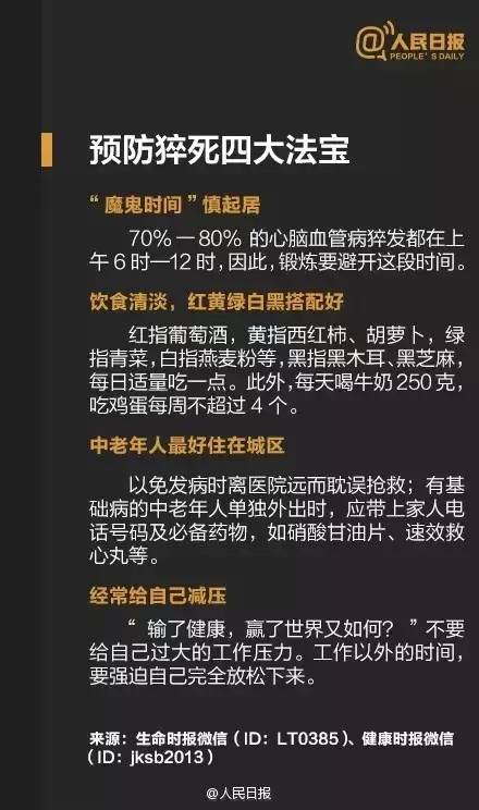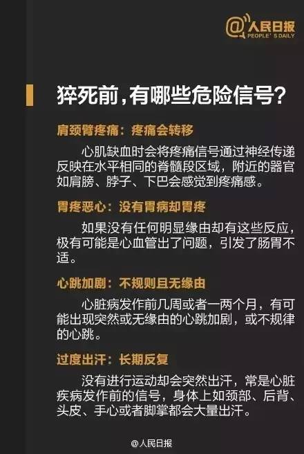 猝死犹如悬在现代人头顶上的达摩克利斯之剑,威胁着我们的生命。预防猝死,从认识它开始,下面这一份手册,值得每一个人记在心里。