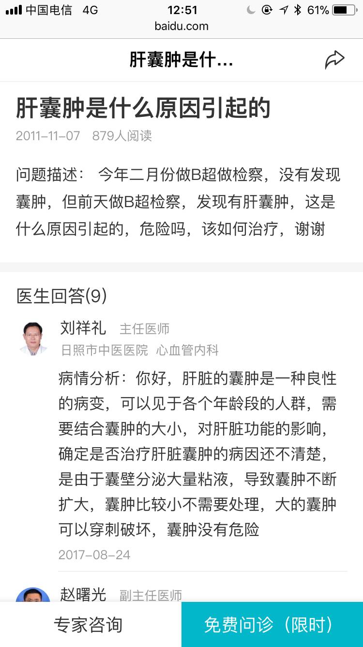 今日复查,生化指标正常,颈部淋巴有缩小,B超检查除肝有个小囊肿以外(4^4mm),其它和以前一样,主治医师说挺好,没啥问题,继续吃药,一个月后再复查,虽然医生说没问题,可怎么就有了这个小囊肿了?