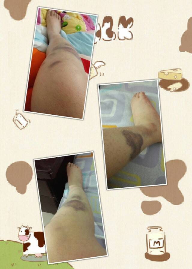 我也是骑车不小心摔了下,腿上青一块紫一块。正在恢复中。