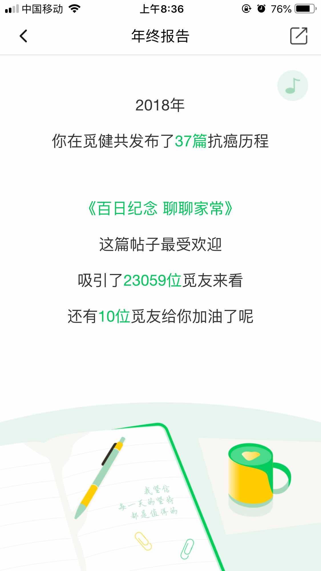 今天是2018年的最后一天,不知不觉间,我在抗癌路上已走过将近三年,而觅健也已与我温暖同行799天。