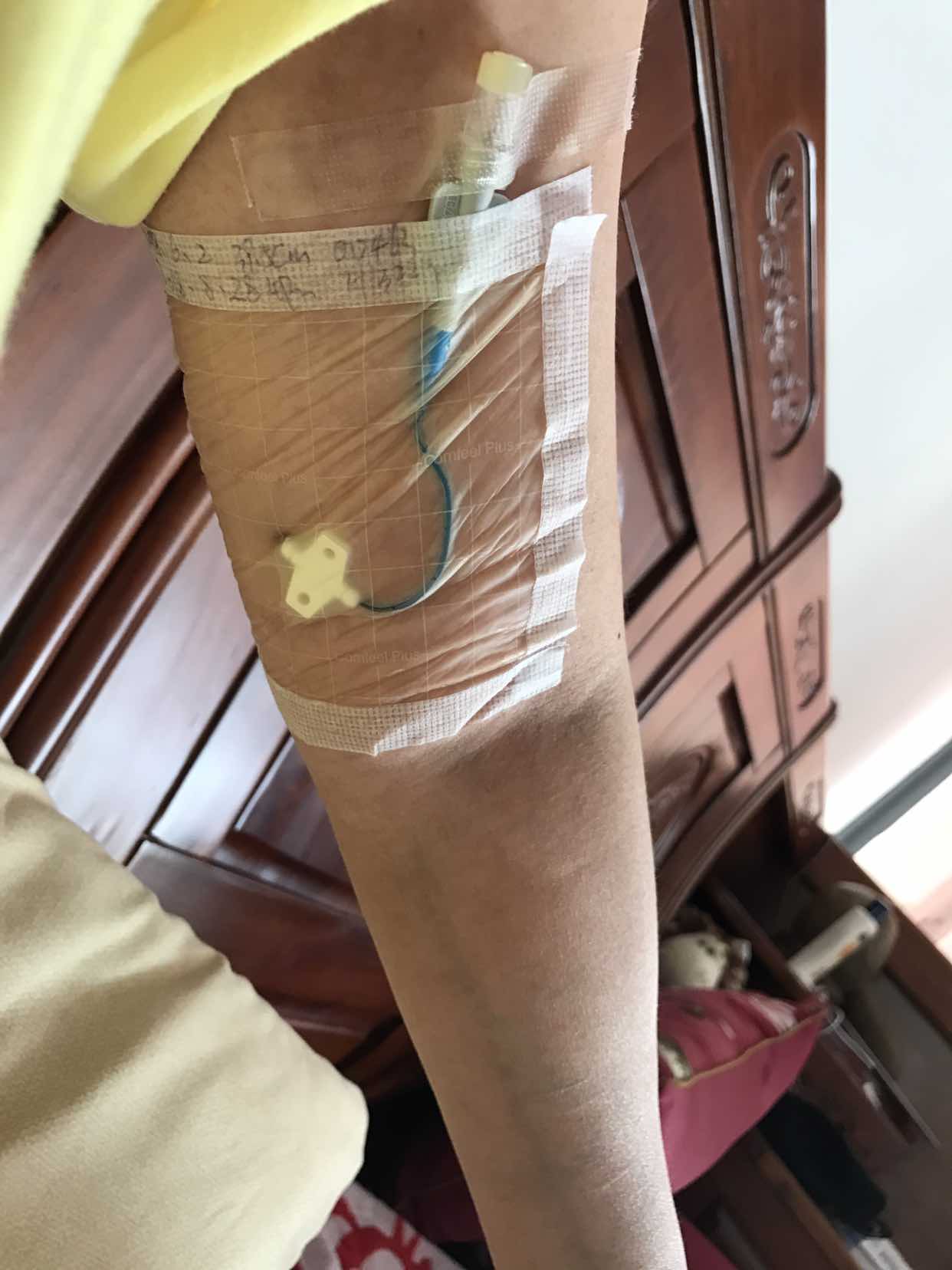 2018年4月份,迷上抖音,熬夜刷抖音,大概两三点睡但其实都没睡着,连着两三天,就这样头开始痛起来还伴有低烧。以为是感冒,吃了各种感冒药都无效,熬不住就吃止痛药,布洛芬都没用我又吃头痛粉,医院开的药也没用头还是痛,加上低烧,最高也就38度5这样。主治医生叫我住院去检查,怕是狼脑。我实在是不想去住院,总期望能在家吃药吃好,就这样在家躺了半个月看不到希望了只得去住院了。5月2日住进去,居然还是17年底住院时的病床,32号床哈。一样一样的检查,ct、核磁共振,结果是脑部白质病变,脑梗,脑萎缩。我拒绝了做骨穿(以前做过两次都没什么的所以我觉得没必要做,每次住院都会叫我做骨穿,我只有前两次做了,以后再住院都没做了。)但是要查明头痛原因还得做腰穿!我怕得要死就是不肯做,就这么拖了好多天,这期间一直在靠头痛粉撑着。直到被神经科医生恐吓说不治会神经之类的我才做的腰穿。结果查出来是隐球菌脑膜炎!我的天呀,我那当护士的弟媳跟我说,姐这个病程长,你要坚持住啊!不知道为什么有个传染科的医生来跟我说这个病治愈率百分之五十到八十,就算出院还要吃药而且药很贵。我当时心里就垮了!心里很怕,怕无数的腰穿怕治不好怕药费。加上头还在痛,整个人很沮丧,想大哭,想象着从楼上跳下去竟得到了一丝轻松。真的要感谢妈妈的陪伴,陪我熬过这黑暗的几个月!第一次在医院住这么久,吊针从早到半夜2点,都打怕了!有次做恶梦梦见护士要杀我,吓得大叫把同病房的吓了一跳以为我怎么了呢。生病时总想要是病好了就要放鞭炮庆祝,要去旅游,要去吃大餐。病好了却什么也没去做。当时以为过不去的坎现在都云淡风轻可以一笑而过了。由于血管太脆一打就淤青所以我做了picc置管,做的时候也是紧张死但其实一点都不通,上照纪念一下,如图。有这个吊针方便多了