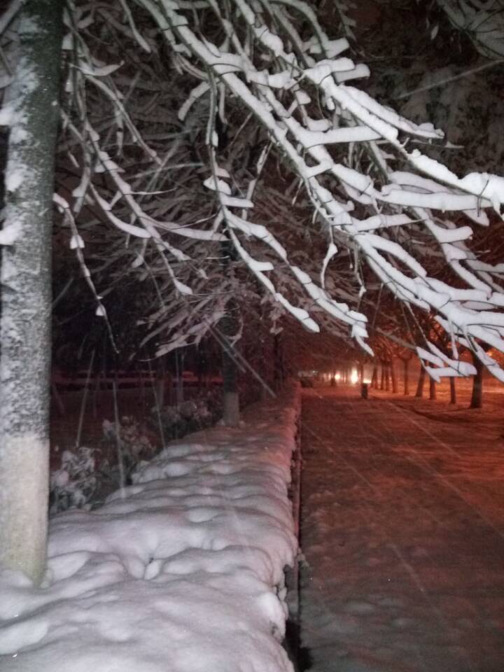 我这下了一夜,快一尺了,现在还下鹅毛呢!