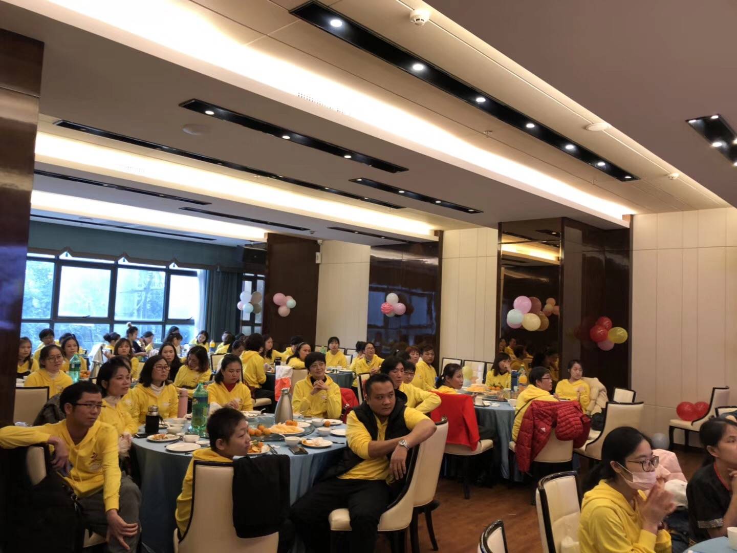 哇撒,霸气。这么多人穿黄色衣服。黄色让我想到鸭子。2019一起加油鸭