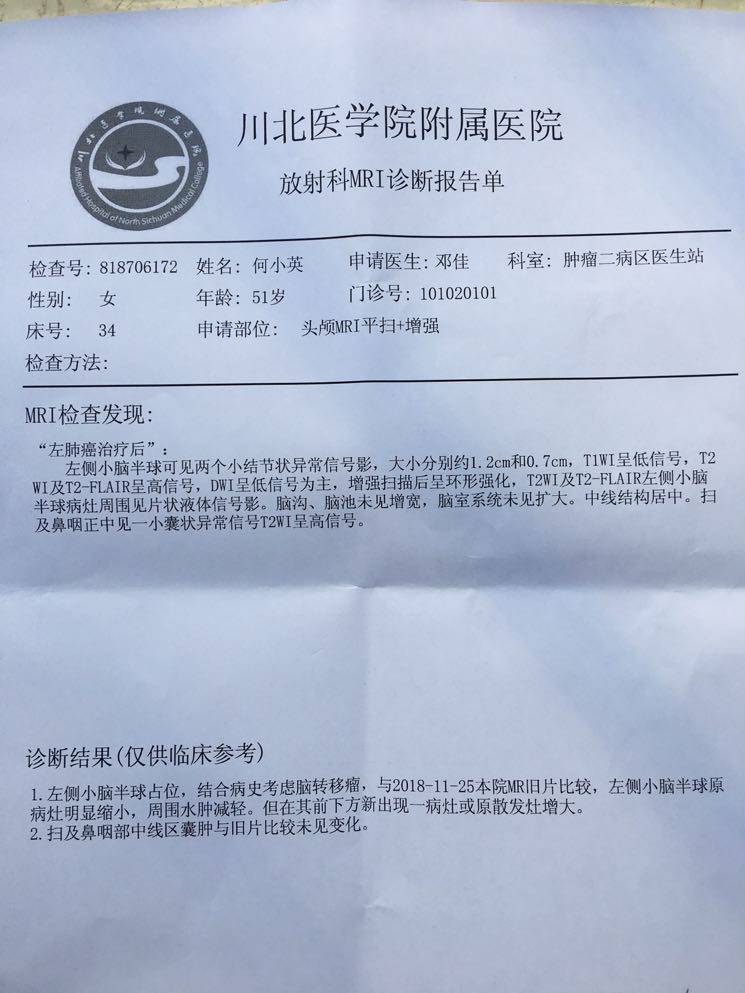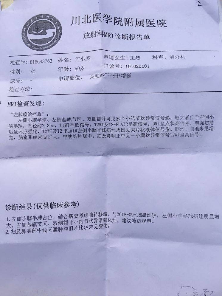妈妈患肺癌已经有三年了,这三年来一直在接受治疗到现在,下面是妈妈检查以及治疗的过程。2010年10月,妈妈体检出肺癌IV期,纵隔淋巴转移,肝部转移,去省肿瘤医院复查,做了PET-CT,结果一样,省肿瘤