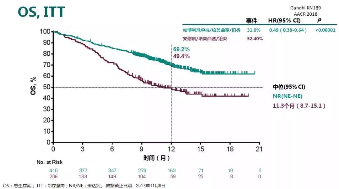 另外还有值得关注的一点,大家都知道使用k药单药,有一部分概率会出现假性进展,但是k➕c联合,并没有出现这种现象。两条曲线始终分的很开。