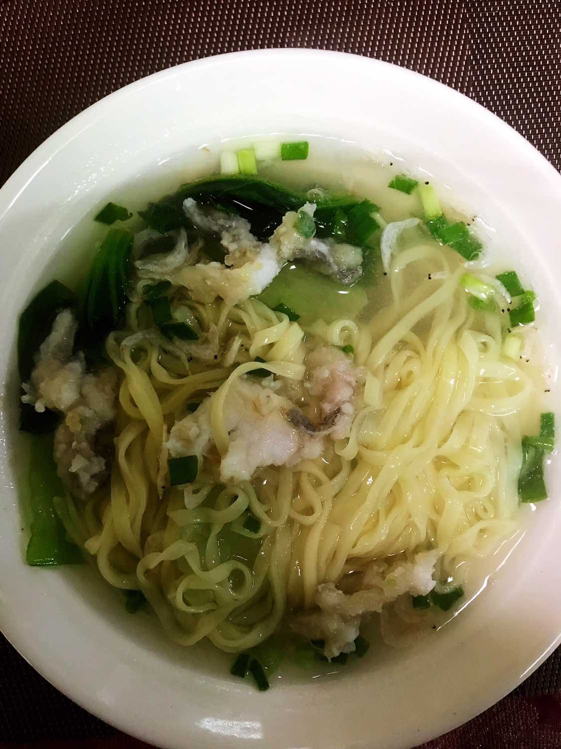 晚餐上一碗鱼丸面,(青菜🥬、鱼丸、葱花、)
