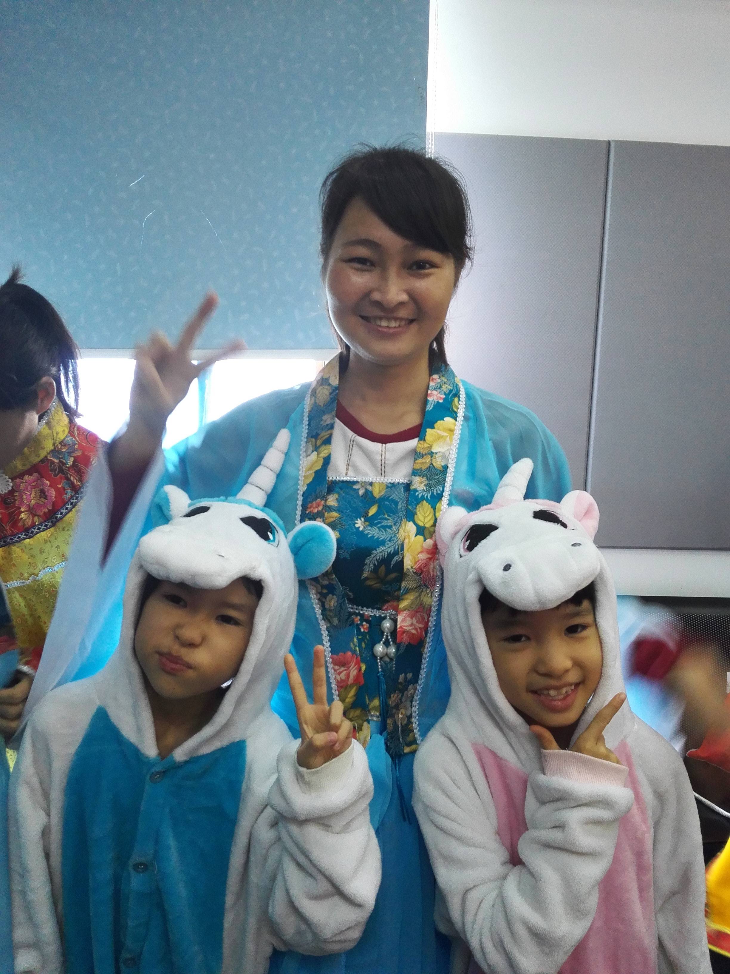 小米寨花首先把仙女服装穿好,耶和两只可爱的小马合影