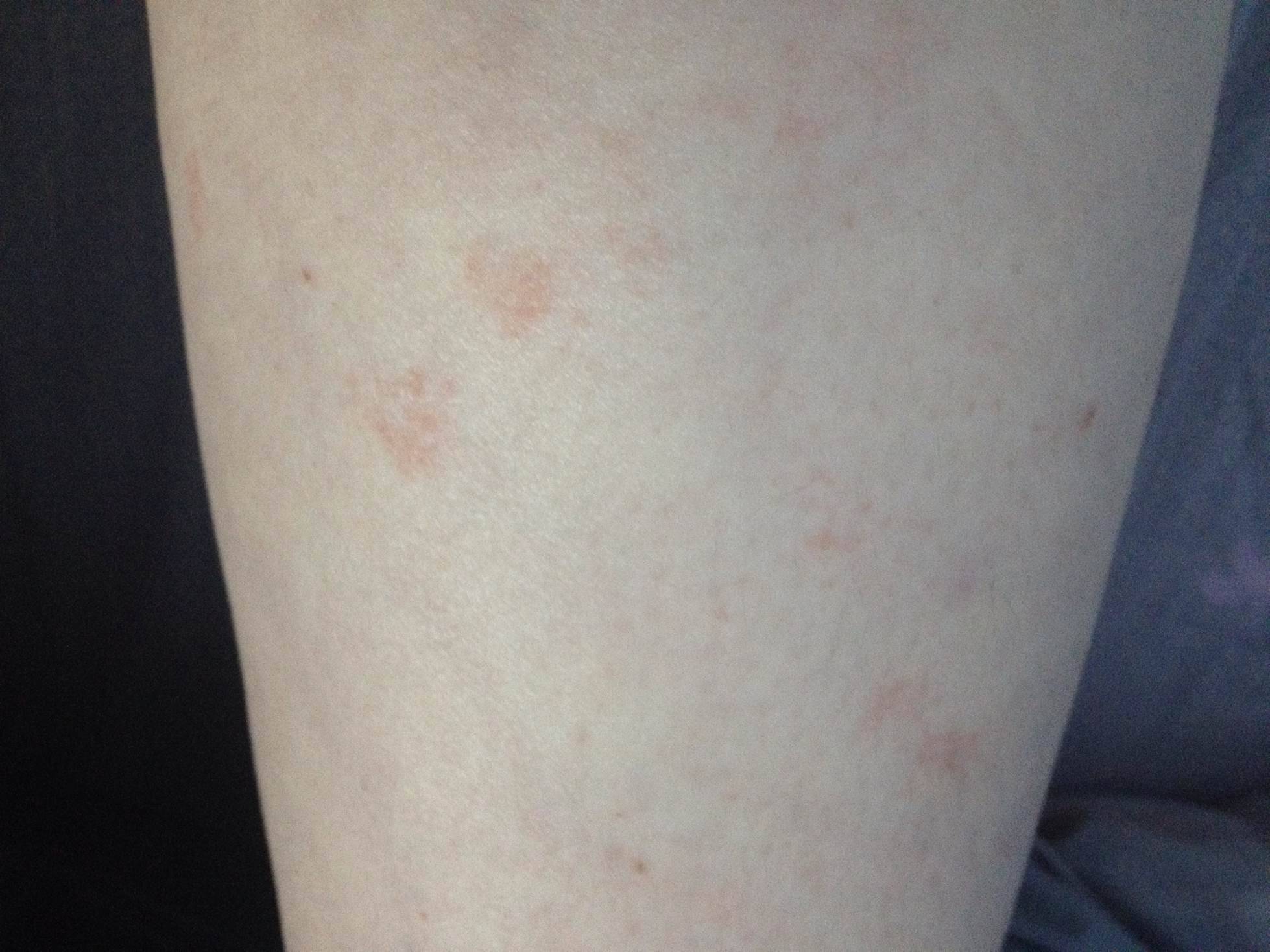 感觉像出血点似的,环属于一种化疗性质的药,身体敏感的副作用也是挺明显的,注意观察看不打环的几天是不是会好转,再者你抹抹润肤乳看有没好转,方便的话就去问问医生,我记得我开始打环的时候医生都会观察身体上是不是有出血点