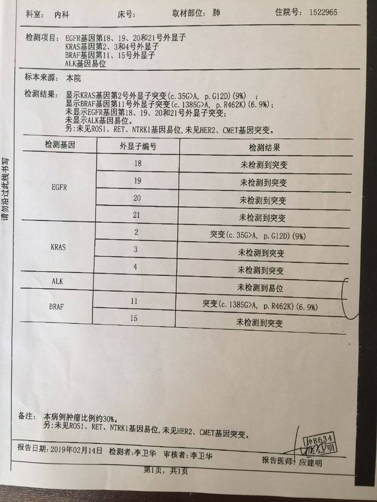 肺腺癌是病理检测,不是基因检测。基因检测是找基因突变,找到靶点用靶向药,你的靶点呢?
