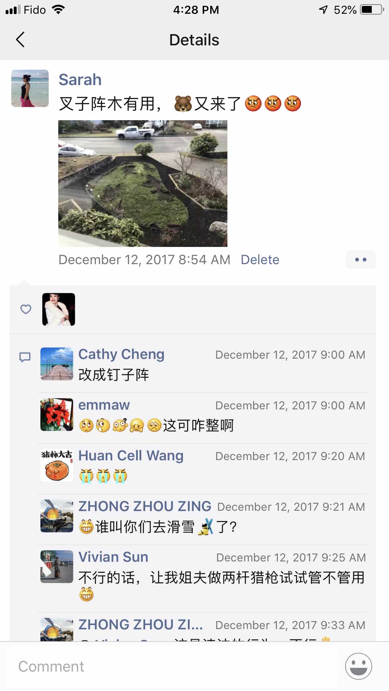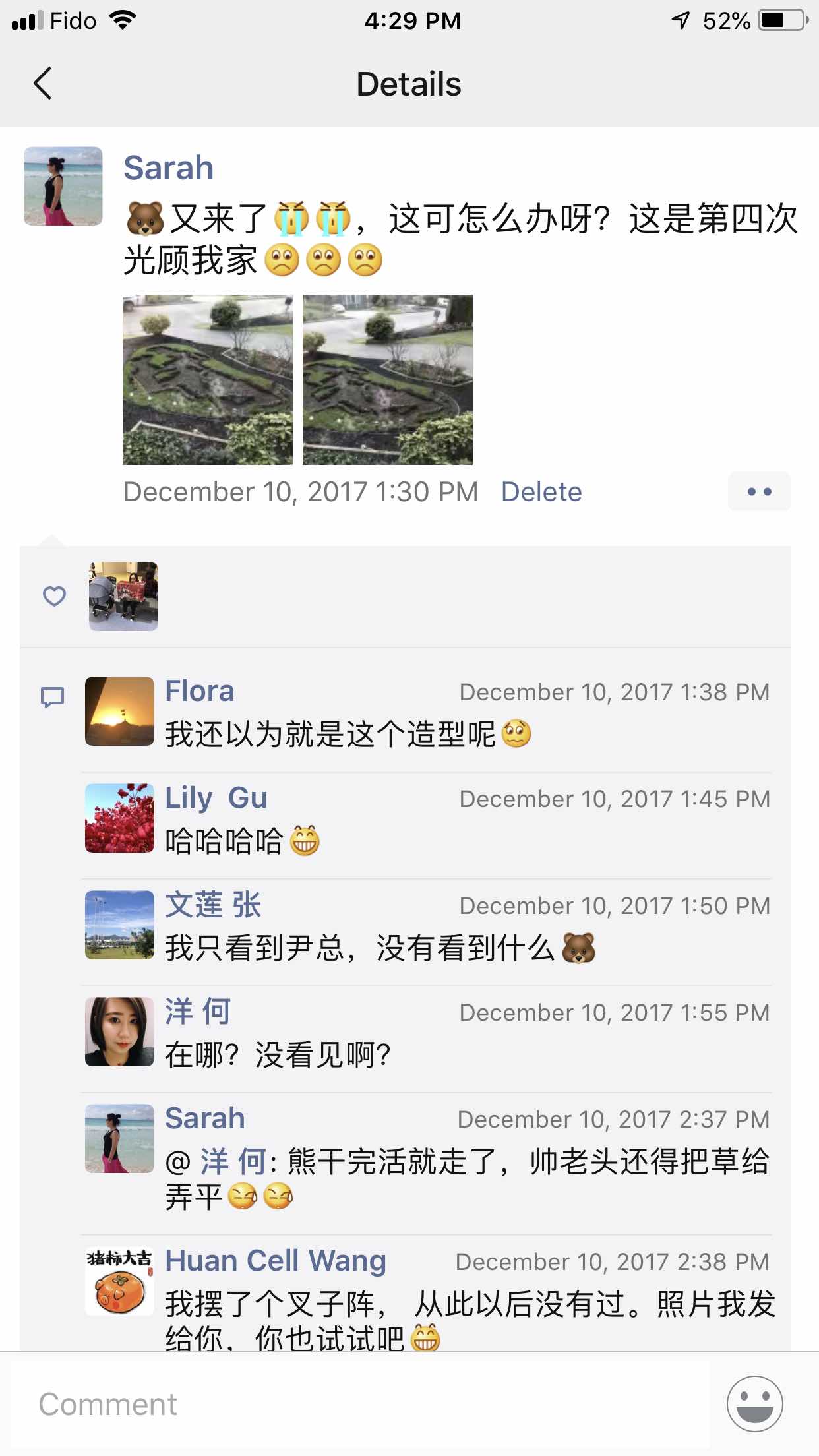 今年浣熊🦝不翻草坪了,它看我家挺好,举家搬迁到我家后院啦。老公看着它,它看着老公,大眼瞪小眼之后,它就躺下睡觉💤了。老公气不过,拿起搂草的耙子打它,它就非常气愤😡的大叫,大叫的同时还用两个爪子打。 老公又拜下阵来,跟我说我是斗不过它啦,咱去买菜吧。买菜回来,他右去看浣熊🦝还在不。回来告诉我,那么打它它就是不走,我们一起出门,它就走啦。我跟老公说,你需要买菜,它也需要呀,它肯定是去购物去啦