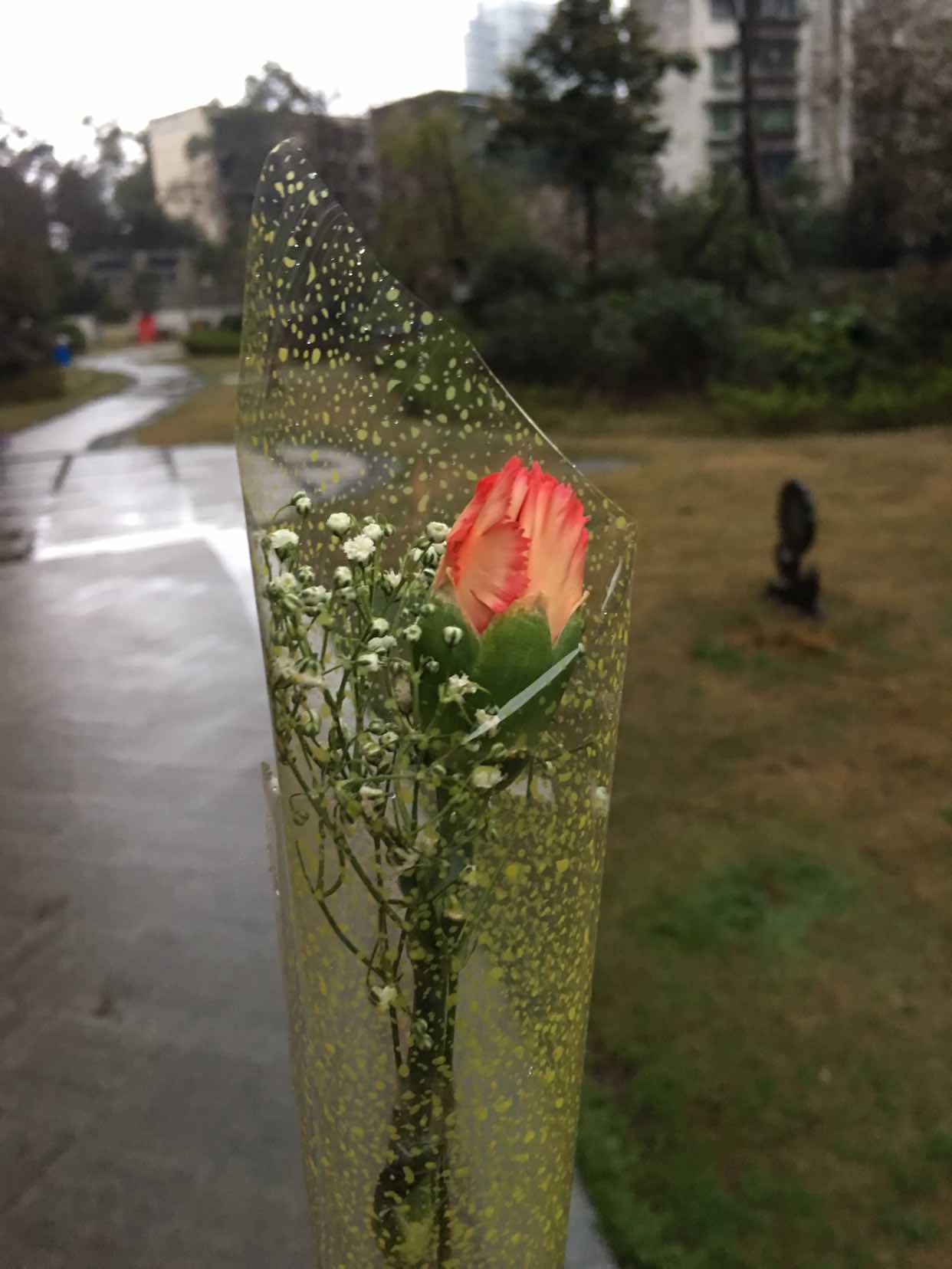 昨天飞到成都,住在女儿家里。今早去早市买菜。这里的青菜品种多又新鲜,买够一天的量就行了,多了也拎不动。还买了排骨和鸡蛋。一路走回来,到了小区门口,门卫在发放鲜花,也送给我一支康乃馨。手持康乃馨,节日的快乐气氛一下子袭来,赶紧用手机拍照,记录下这温馨时刻。