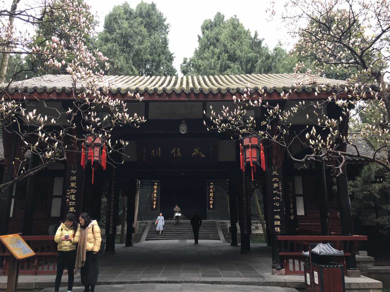 吃过早饭,步行到武侯祠游览。玉兰花开得高雅艳丽,游人流连忘返。参观了三国文化陈列馆,对1700年前的那些历史人物和事件有了超越时空的了解。旅行中学到的东西更扎实。正所谓行万里路胜读万卷书吧。