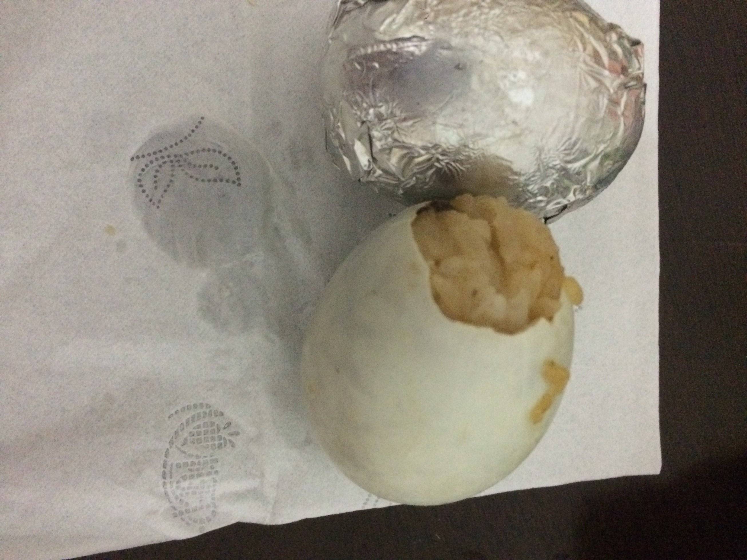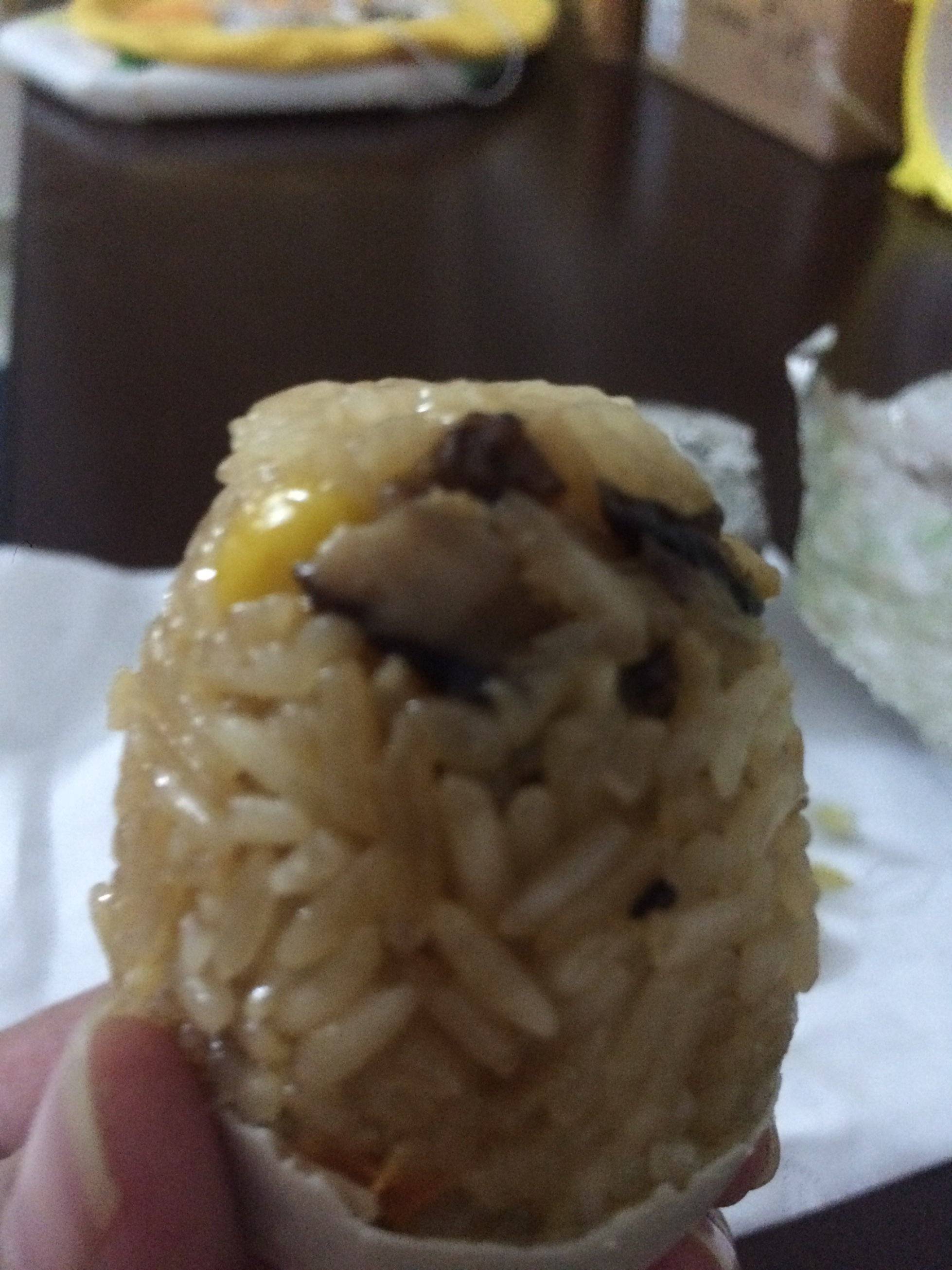 晚上,邻居拿来两个银色的东西给我,说是给我尝尝。。我也不知道是什么,只是接过来的时候热和和的,好像刚煮的样子。。。打开银色包装,原来是鸭蛋。。上面有一些煮熟的米,而且很香。。。把蛋壳剥掉,一个米蛋呈现出来,里面有肉,有香菇,有玉米🌽,像粽子一样。。味道极好。。最底下的是咸蛋黄。。。原来是蛋中蛋,太有创意了。。。