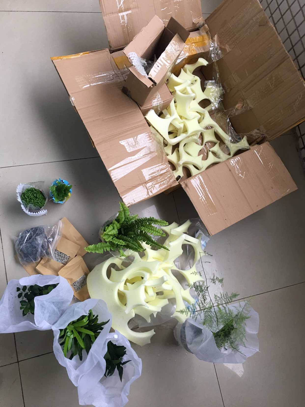花草是在网上买的,我大概构思了一下需要用的绿植,顺便多买了几盆水培的,又买了花盆、种植的专用土、还有配饰!