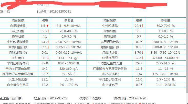打了三天升白针,利可君一直在吃,第一次检查正常,第二次只有1.5