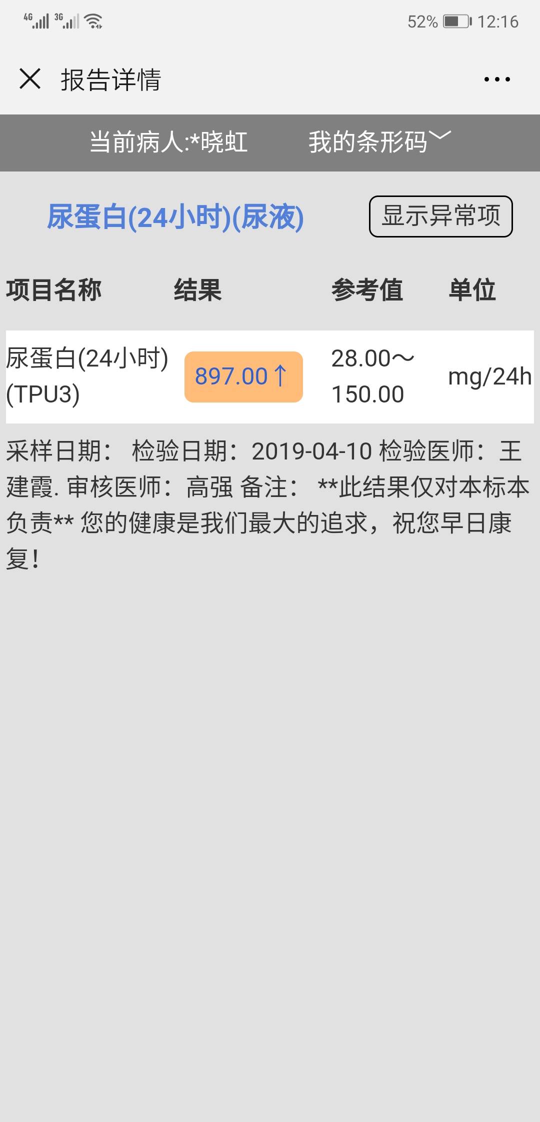 @yao1昨天去复查,蛋白1 ,定量0.8