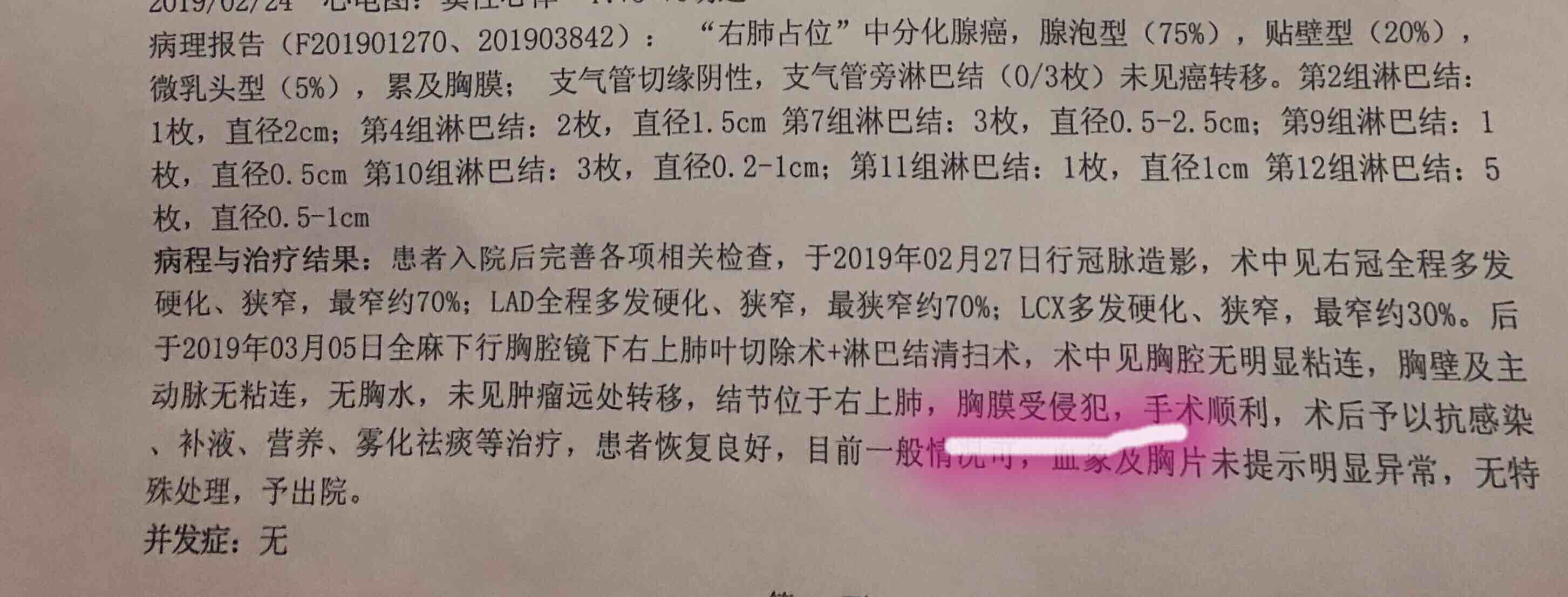 我妈也是累及脏层胸膜,这个也是个易复发的因素