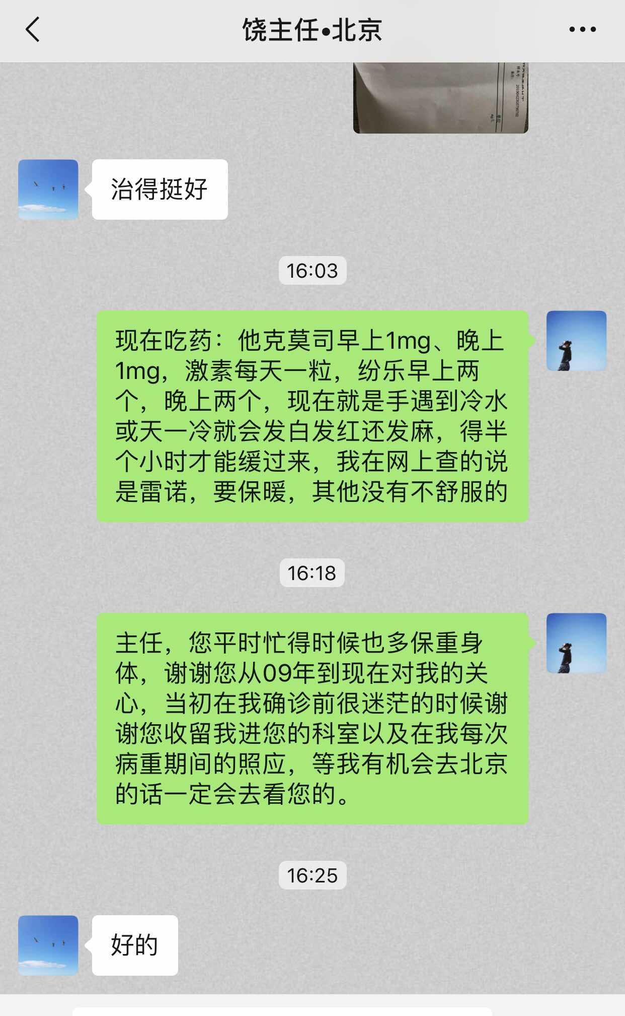 把今天复查的结果发给远在北京的饶主任看,还是不错的,继续加油!