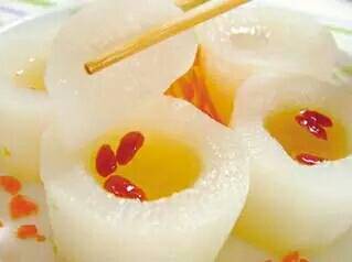 具体做法:选用新鲜白萝卜1斤、生姜30克、蜂蜜30克。萝卜和生姜去皮后切碎块,一同放入榨汁机打碎,加入蜂蜜后即可饮用。