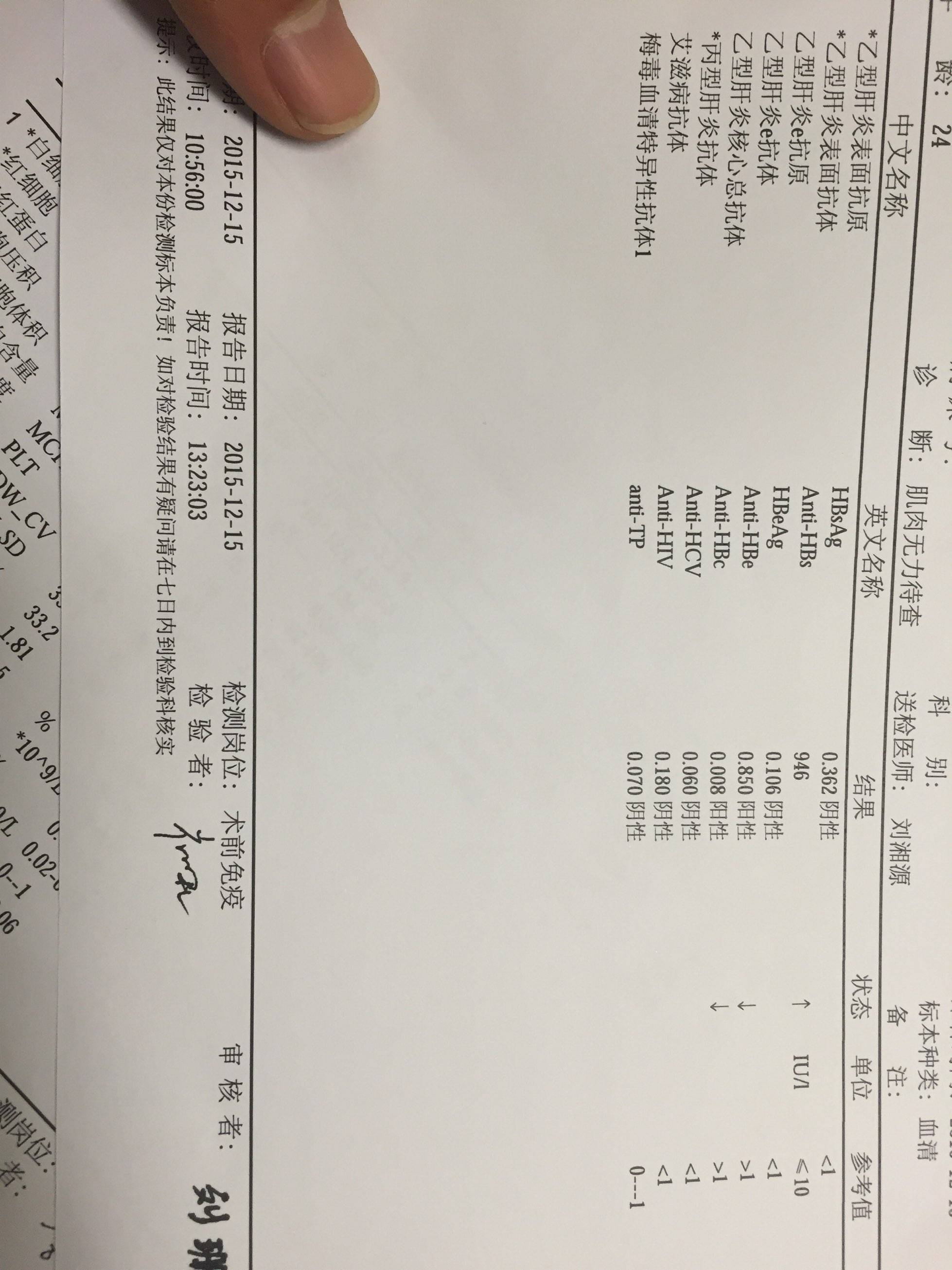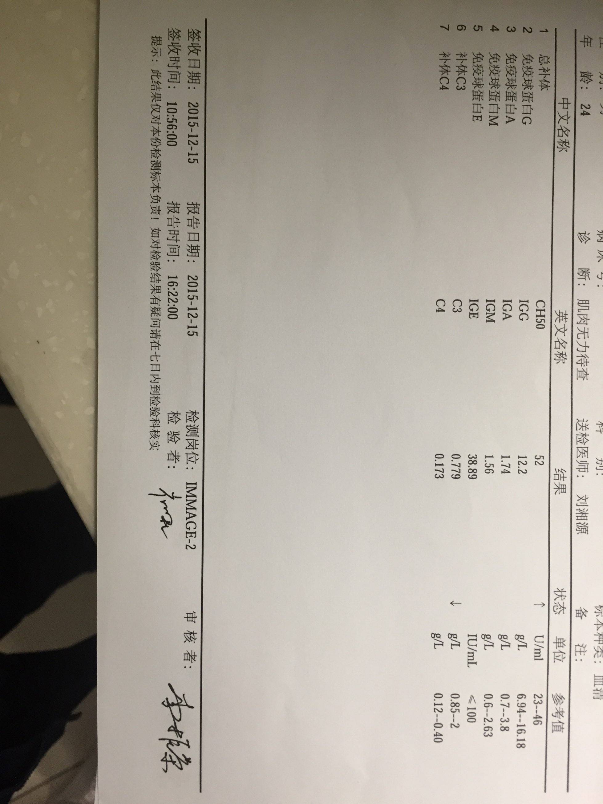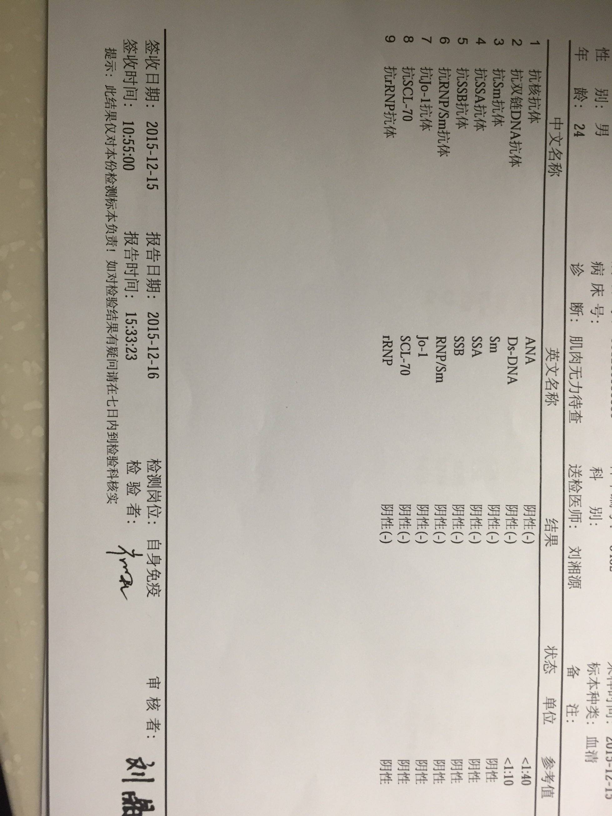 是呢,都是阴,找刘主任看了么?我看检查单上面有写,肌肉无力待查,这是化验前初步诊断结果的么?