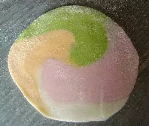 把小面团擀好,就变成了这样的“八卦图”面皮: