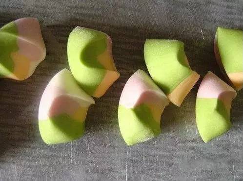 把每一个颜色的面团都搓成圆棒型,然后把所有圆棒面团并在一起,再搓成圆棒型,一个个切开后,就变成了这样: