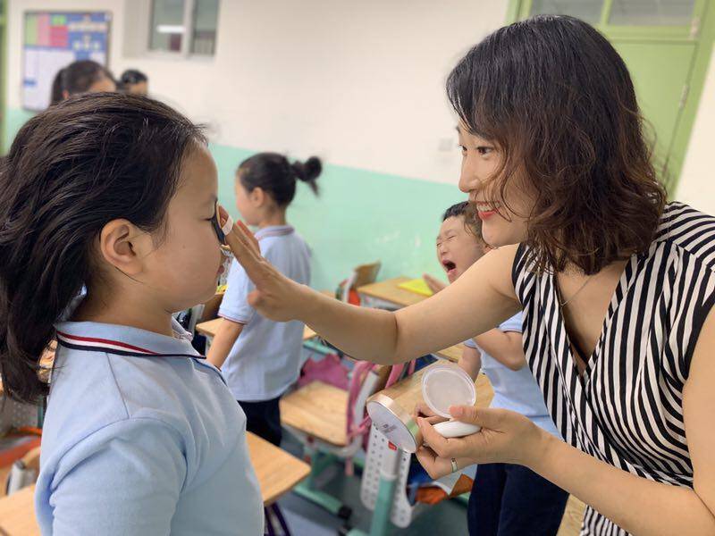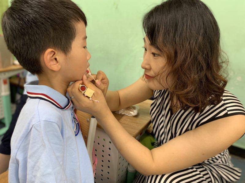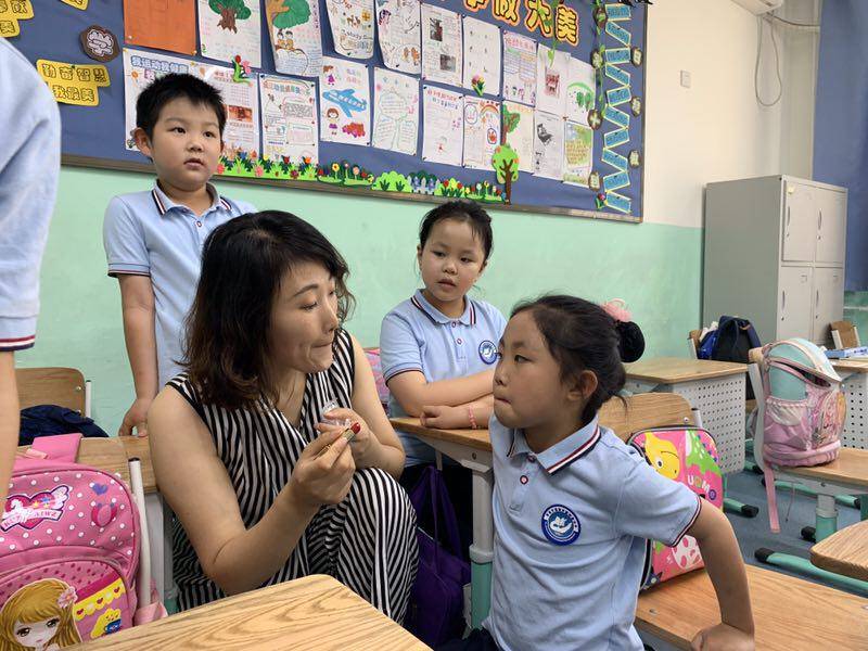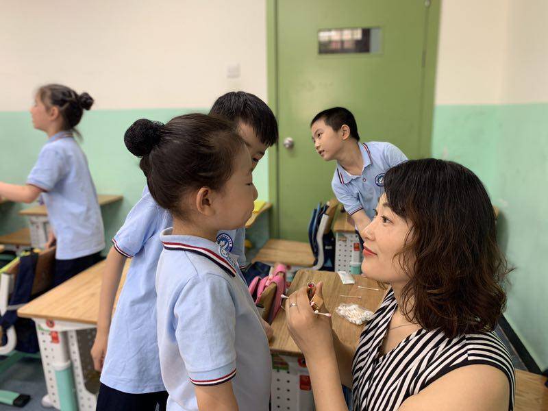 今天女儿学校举行诗词吟唱比赛,我报名来给宝贝们化妆,其实我是0技术只想凑热闹让女儿高兴😁。午饭后来到教室果然女儿看到我乐得手舞足蹈😄,小朋友们也热情高涨😂。各个画的蓝眼皮红脸蛋红嘴唇👄可爱极了😂。还有家长为我们拍下照片。回来的路上女儿高兴的拉着我说:以后再有活动还要我报名。我答应她了,我说其实妈妈能参与你们的活动也特别开心😃