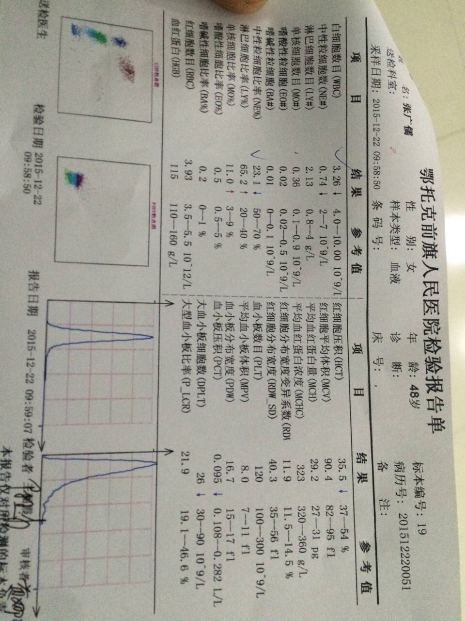 白细胞小于4要打针了,目前只能打针,一针就能上去。注意不要让患者伤风感冒,患者目前抵抗力会很差的,避免雪上加霜。化疗有点贫血了,红细胞少,是化疗后的正常反应。中性很低,考虑有炎症。血小板指数正常。