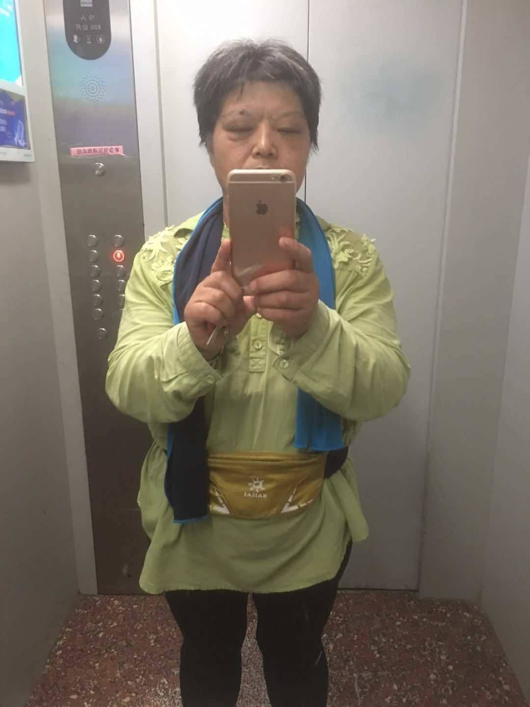 每天早晨跑五圈(6公里),晚上快走四圈(五公里多),每天坚持,一年就是这个样子。