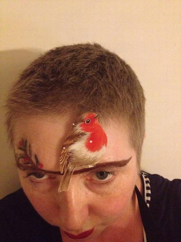 英国乳腺癌患者画另类眉妆庆圣诞