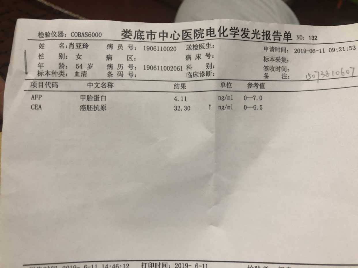 CEA持续上升的话就要重视了。