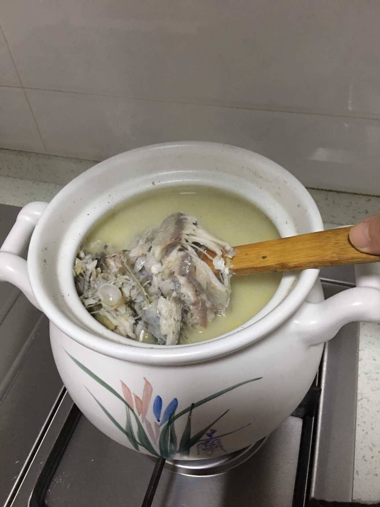 重点是一定用水壶烧一壶开水,其次找个砂锅,把煸炒好的鱼全部倒入砂锅,其次放入开水,烧开开小火慢慢熬至鱼汤奶白色即可。