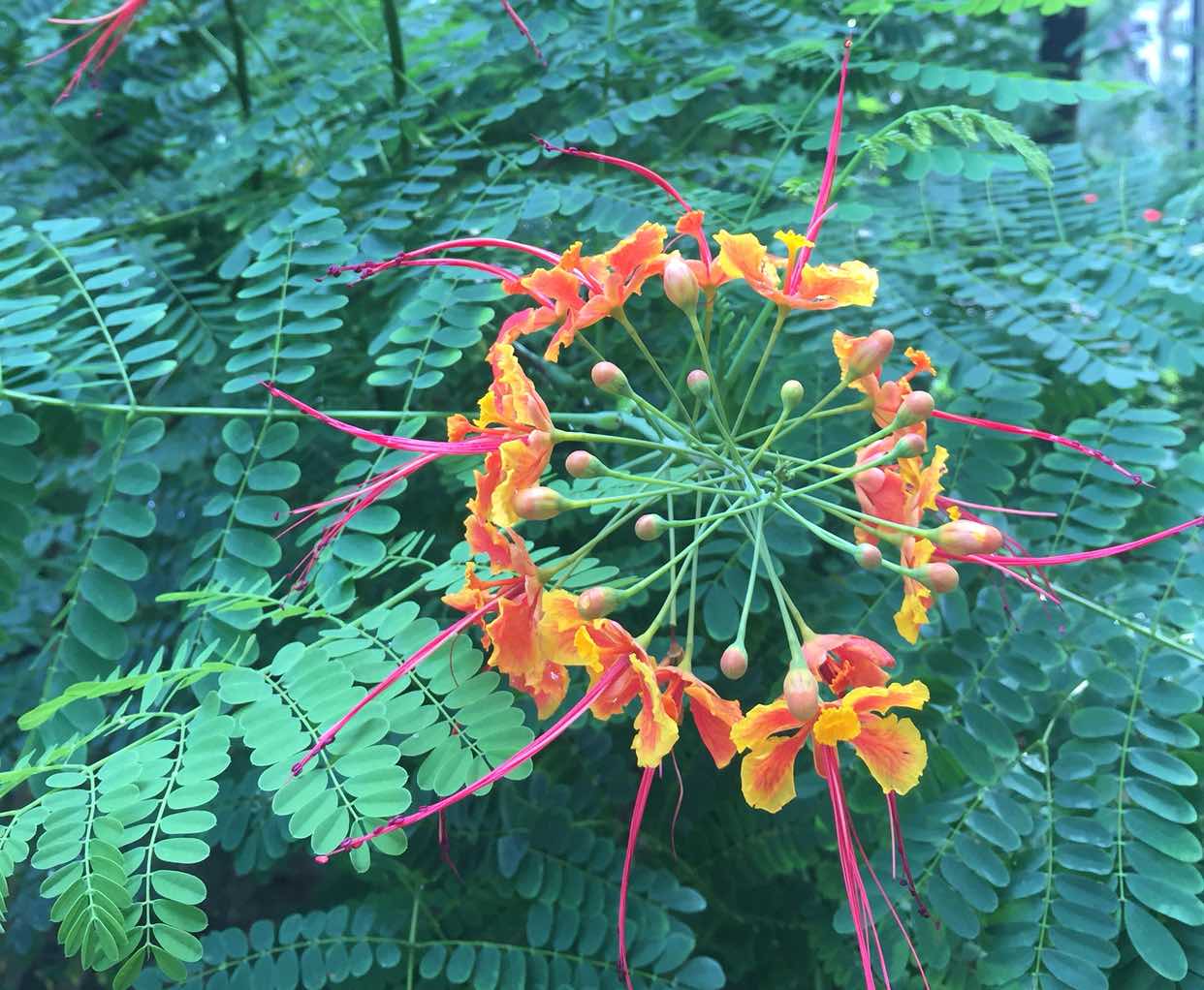 我还是一个爱美的女人,一个爱在文字和想象中寻觅美的女人,看着楼下这一株凤凰树,时而飞上一对凤凰,时而聚集了一圈的凤凰,都是极美的风景。