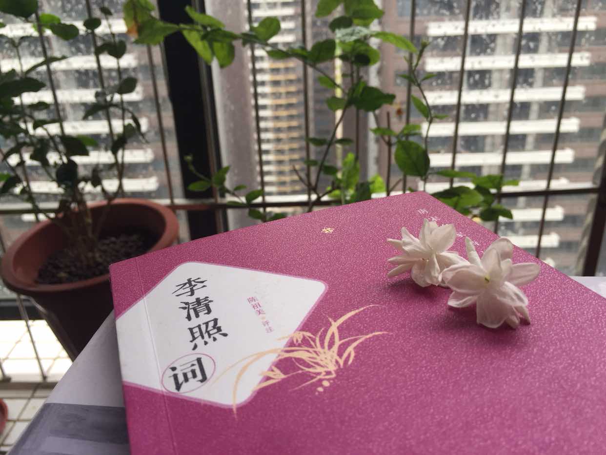 自己一个人的时候,躺在床上,灯下静静的读书。现在颈椎受不了了,躺着看书颈椎最是受累。终于在小小的一方阳台上安放了一张小桌。清晨,可以东望朝阳,黄昏,有夕阳余晖映照。更加上阳台上种植了几盆花花草草,时值夏日,茉莉的清香一早一晚的最是馥郁持久。